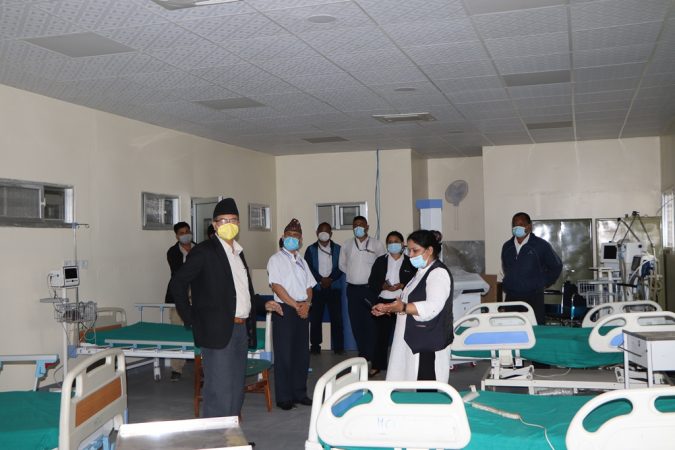 निरीक्षणका क्रममा उनले भक्तपुर नपा वडा नं. १ स्थित भक्तपुर अस्पतालको प्रांगणमा कोभिड–१९ को लागि बनाइएको आइसोलेसन वार्ड र आईसीयू कक्षको पनि अवलोकन गरे। सो अवसरमा भक्तपुर अस्पतालका मेडिकल सुपरिटेन्डेन्ट सुमित्रा गौतमले छिट्टै नै आइसीयुू कक्ष सञ्चालनमा ल्याउने जानकारी दिए।