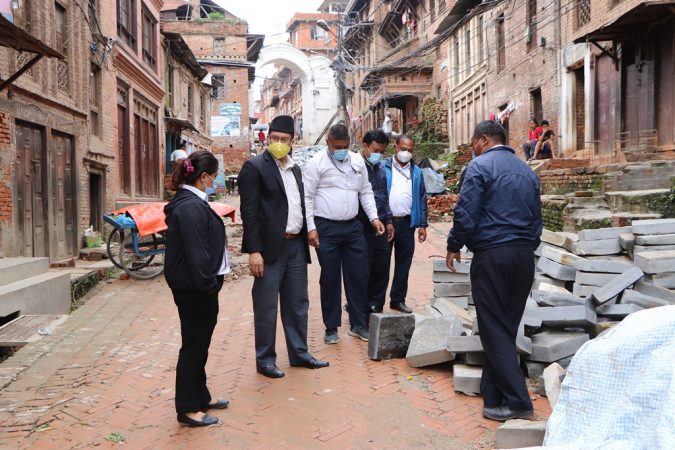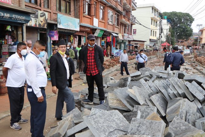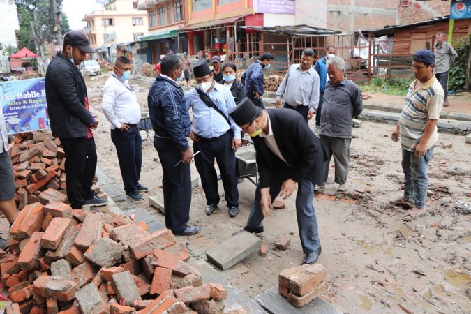 नेपाल सरकारको बजेटअन्तर्गत ठेकेदार मार्फत नगरका विभिन्न ठाउँहरुमा भइरहेको ढुंगा छपाई कार्यमा कम गुणस्तरको ढुंगा प्रयोग भएको जनगुनासो सुनिएपछि भक्तपुर नगरपालिकाका प्रमुख सुनिल प्रजापतिले बिहीबार ती क्षेत्रहरुमा स्थलगत निरीक्षण गरेकाे छ ।