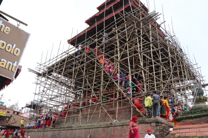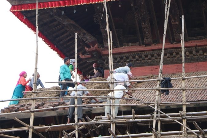 भक्तपुरको प्रसिद्ध पाँचतले मन्दिर जीर्णोद्धार कार्यमा भक्तपुर नगरपालिकाका विभिन्न वडाका वडाबासीहरुले जनश्रमदान गरिंदैआएको छ ।