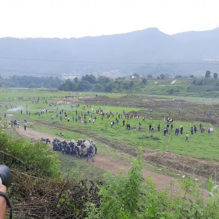 प्रहरी र किसानबीचको झडपमा १०–१५ जना घाइते भएका छन् । शान्तिपूर्ण रुपमा रोपाइ भइराखेको उक्त स्थानमा प्रहरी आफै ढुंगा हानी उत्तेजित पारेको आयोजकको भनाइ छ । आजको रोपाइमा विशेषतः भक्तपुरबासीको ऐक्यबद्धताका कारण खोकनाबासीको मनोबल बढेको छ ।