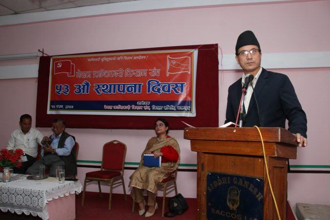 नेपाल क्रान्तिकारी किसान संघ जिल्ला समिति भक्तपुरको आयोजनामा नेक्राकिसंघको ५३ औं स्थापना दिवसको अवसरमा आयोजित कार्यक्रममा बोल्दै उनले कृषि क्षेत्रको विकासका लागि सरकारले अरबौं रुपैयाँ अनुदानको व्यवस्था गरे पनि वास्तविक पीडित किसानहरूले ती अनुदान पाउन नसकिरहेको गुनासो गर्दै वर्तमान समयमा उत्पादनका साधनहरूको यान्त्रीकरणको आवश्यकता औंल्याए ।