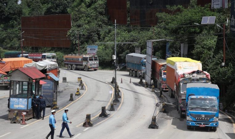 काठमाडौंमा उपत्यकामा निषेधाज्ञा शुरु भएपछि काठमाडौं प्रवेश गर्ने मुख्य नाका नागढुंगामा धेरै मालबाहक सवारी साधन रोकिएका छन् ।