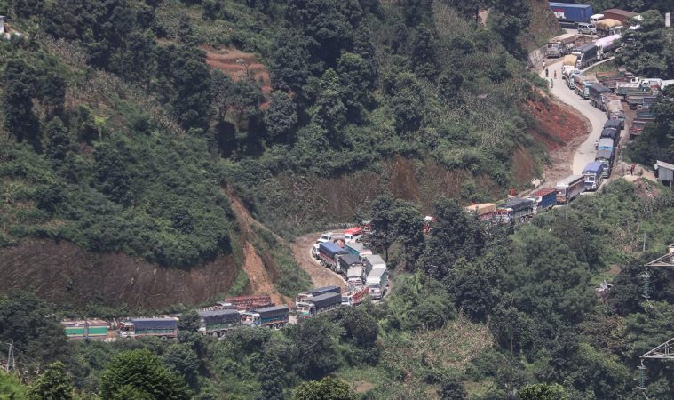‘सिमेन्ट, छड र अन्य विभिन्न दैनिक उपभोग्य वस्तु बोकेका ट्रकहरु रोकियो,’ उनले भने, ‘यसले गर्दा सवारी चालकहरु भोकै सडकमा बस्नु परेको छ, तुरुन्तै ती ट्रकहरु आएर सामान खन्याएर फर्किन पाउनुपर्छ ।’