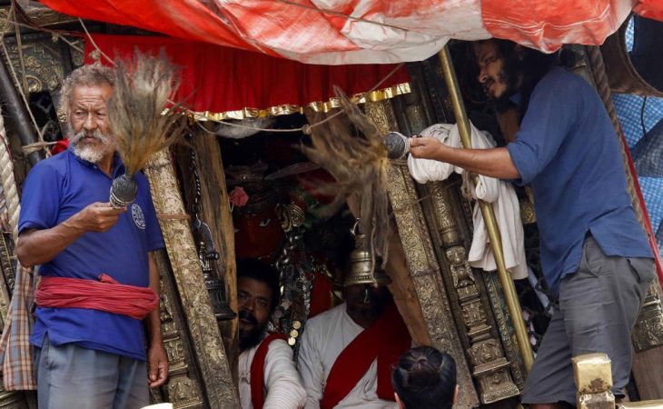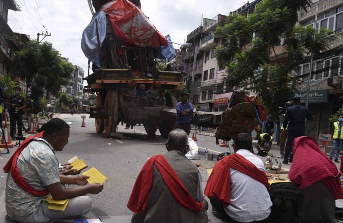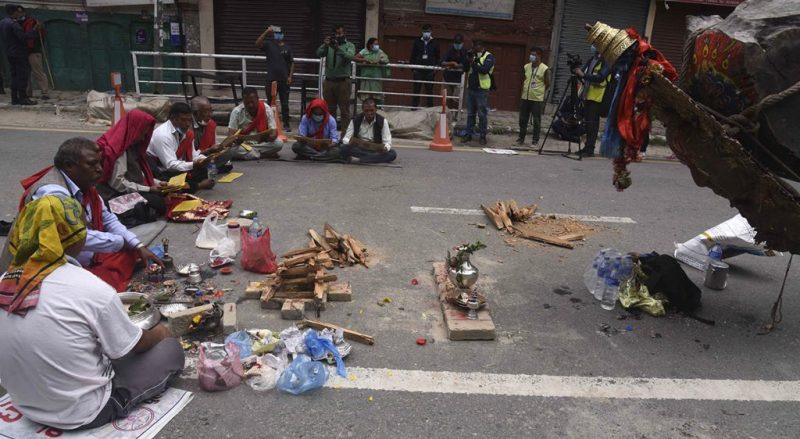 शुक्रबार जिल्ला प्रशासन कार्यालय ललितपुरले जारी गरेको कर्फ्युका बीच पुल्चोकमा रातो मत्स्येन्द्रनाथको क्षमा पूजा चलिरहेको छ ।