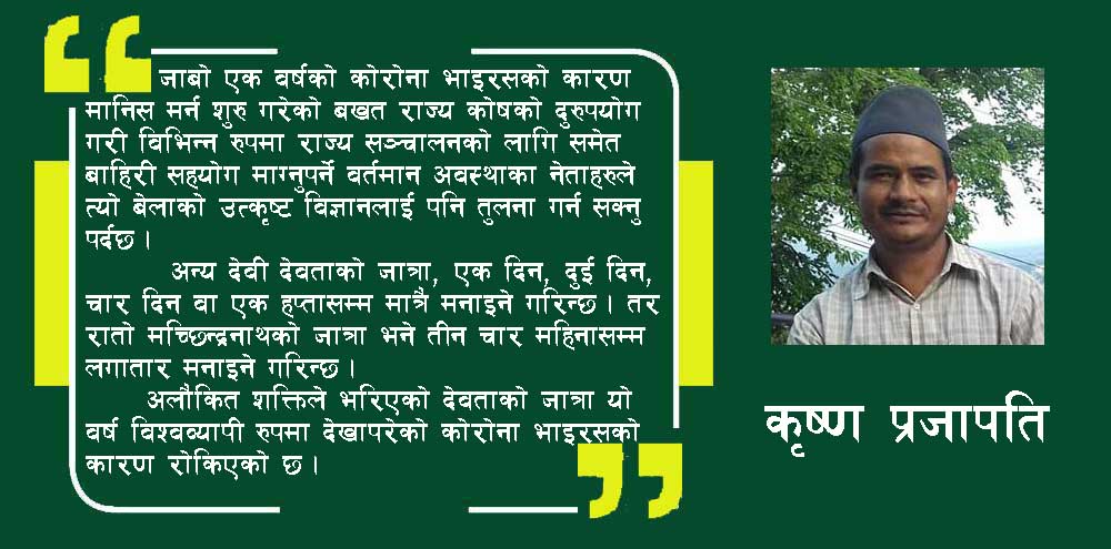 न्यूज अपडेट भक्तपुर, २३ भदाै भक्तपुर नगरमा कोभिड–१९ का संक्रमितको सङ्ख्या बढ्दो छ । जिल्ला स्वास्थ्य कार्यालय भक्तपुरबाट प्राप्त जानकारीअनुसार मंगलबार भक्तपुर नगरमा जम्मा ३२ जना व्यक्तिमा कोभिड संक्रमण पुष्टि भएको छ । उनीहरूमध्ये १८ जना पुरुष र १४ जना महिला छन् । त्यस्तै मध्यपुर नपामा ३ जना पुरुष र १० जना महिला, सुर्यबिनायक नपामा […]