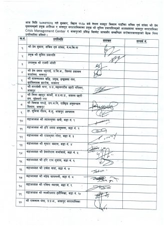 बैठकले नजिकिँदै गरेको भक्तपुरको प्रसिद्ध बिस्का जात्राअन्तर्गतको भैरवनाथको रथ तान्ने, लिंगो उभ्याउने र ढाल्ने जात्रा कोभिड १९ रोग संक्रमणको जोखिमलाई ध्यानमा राखी आवश्यक स्वास्थ्य मापदण्ड अपनाई सभ्य र शान्तिपूर्ण तरिकाले सञ्चालन गर्ने निर्णय गर्याे ।