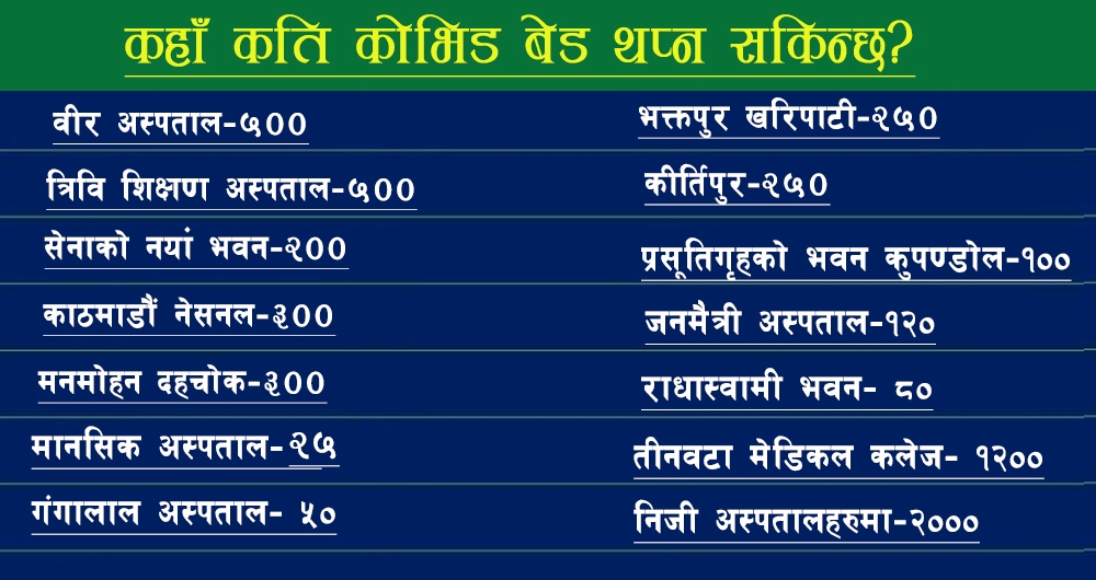 न्यूज अपडेट काठमाडाैं, २२ बैशाख पछिल्लो २४ घण्टामा ५८ जना संक्रमितको मृत्यु भएको छ। स्वास्थ्य तथा जनसंख्या मन्त्रालयका अनुसार हालसम्म मृत्यु हुने संक्रमितको संख्या ३ हजार ४७५ पुगेको छ। गत २४ घण्टामा मात्र ८ हजार ६५९ जना संक्रमित पुष्टि भएका छन्। यो संख्या हालसम्मको उच्च हो।