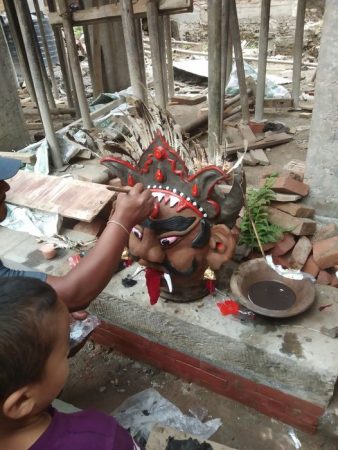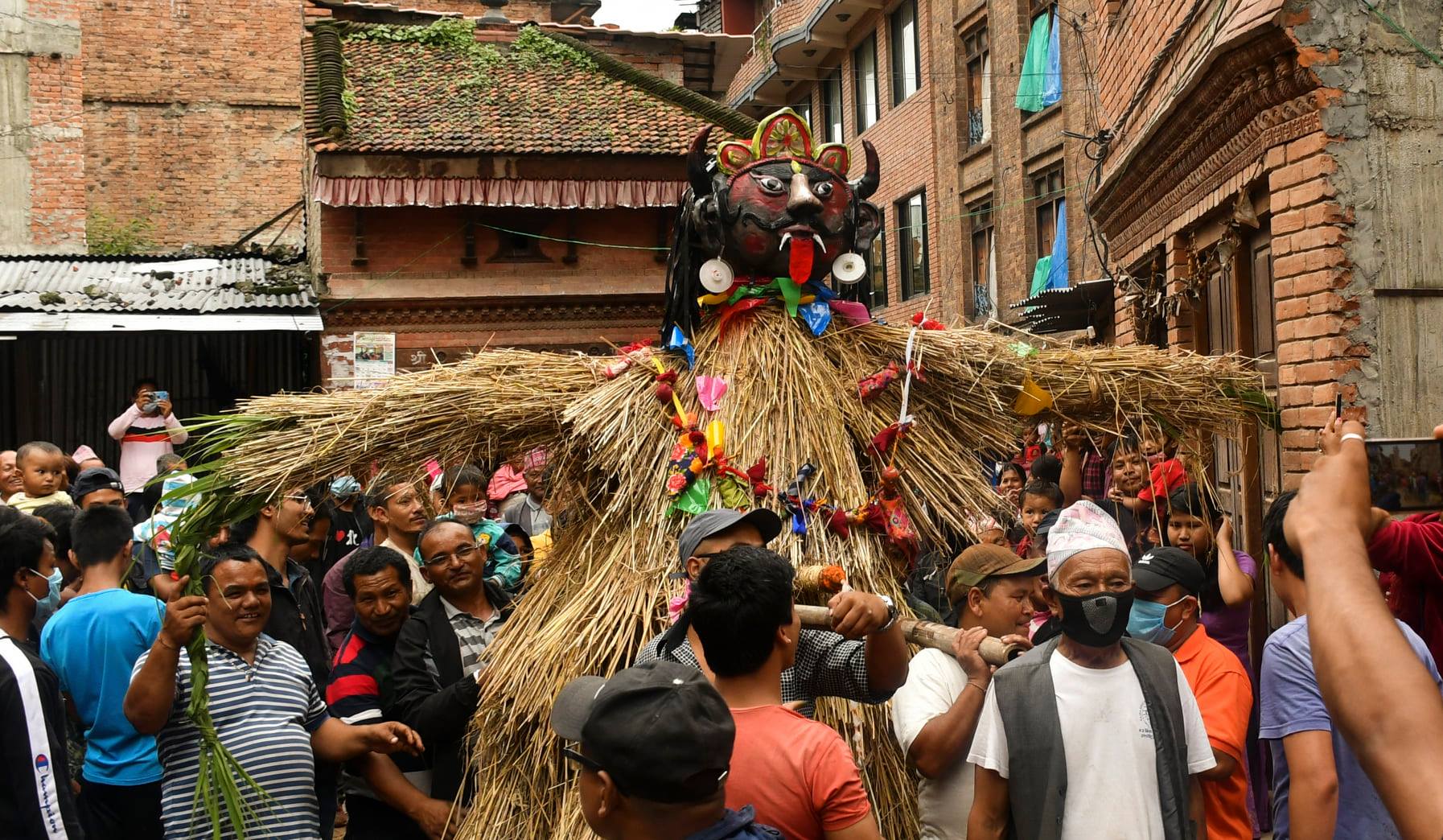 उपत्यकामा रहेका नेवार समुदायले यो पर्वको दिन नयाँ घरमा तीन मुखे फलामको किला ठोक्ने गर्दछन् । बिहान स्नान गरेर घर शुद्ध गरी पूजा गर्ने र साँझ टोलका सबै जना मिलेर केही पर लगेर राक्षसलाई जलाउने परम्परा रहेको छ ।