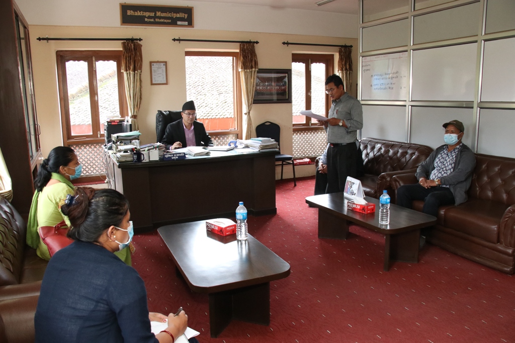 यसअघि विद्यालय सञ्चालन गर्ने विषयमा भक्तपुर नगरपालिकाले नगरका सामुदायिक तथा संस्थागत विद्यालयका प्रतिनिधिहरुसँग छलफल गरी आवश्यक राय सुझाव लिएको थियो । बैठकमा विद्यालयका प्रतिनिधिहरुले विद्यालय सञ्चालन गरेका अरु नपाको स्थिति हेरेर आचारसंहिता पालना गरी चरणबद्ध रुपमा कक्षा सञ्चालन गर्नुपर्ने, सार्वजनिक विद्यालयहरुमा अनलाइन कक्षा भौतिक उपस्थिति जतिको प्रभावकारी नभएको, अनलाइन कक्षा आधारभूत तहमा कम प्रभावकारी भएको, विद्यार्थीमा सञ्चारको नकारात्मक असर पुगेको, अनलाइन कक्षालाई प्रभावकारी रुपमा सञ्चालन गर्दै लानुपर्नेलगायतका धारणा राखेको थियो ।