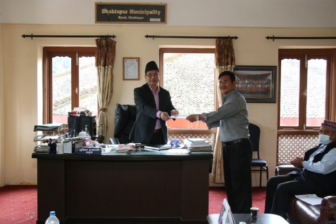 भक्तपुर नगरपालिकाका प्रमुख सुनिल प्रजापतिलाई आधारभूत विद्यालय समिति भक्तपुरले शुक्रबार ज्ञापन पत्र बुझाएको छ । नगर प्रमुख प्रजापतिलाई आधारभूत विद्यालय समिति भक्तपुरका अध्यक्ष दिपक माकले ५ बुँदे मागसहित उक्त ज्ञापन पत्र बुझाएको हो ।