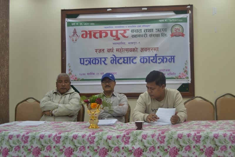 आइतबार भएको पत्रकार भेटघाट कार्यक्रममा संस्थाका अध्यक्ष बलराम प्रजापतिले संस्थाको विगतको इतिहासलाई स्मरण गर्दै भक्तपुर बचतप्रतिको स्थानीयबासीको विश्वासले पच्चीसौं वर्षमा प्रवेश गर्न सफल भएको बताए । उनले सत्य र न्यायको पक्षमा पत्रकार सधै उभिनुपर्ने बताउँदै समुदायमा आधारित भएकै कारण संस्थाको आर्थिक, सामाजिक र सांस्कृतिक गतिविधिमा अगाडी रहेको बताए । उनले यससँगै शिक्षा, स्वास्थ्य, कृषि, उद्योग, साना तथा मझौला व्यवसाय लगायतका क्षेत्रमा एक हजार सात सय जनालाई ऋण सेवा दिइरहेको बताए । साथै नेपाल सरकारको राम्रो नीति तथा कार्यक्रमको अभावले कृषि तथा उत्पादनमूलक क्षेत्रमा काम गर्नेका लागि ऋण प्रवाहमा कमी आएको बताए । सदस्यको विश्वासले हाल संस्थाले २८ आना ३ पैसा साढे २ दाम जग्गा जोड्न सफल भएको स्पष्ट पार्दै उनले ७ करोडको सम्पत्ति सामान रहेको बताए ।