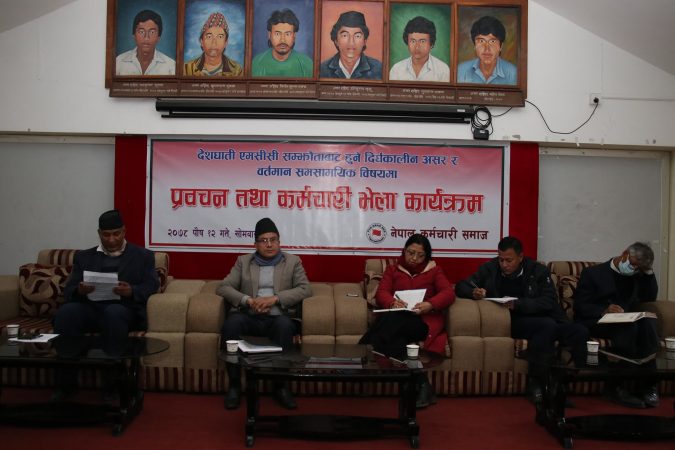 नेपाल कर्मचारी समाजको आयोजनामा देशघाती एमसीसी सम्झौताबाट हुने दीर्घकालीन असर र वर्तमान समसामयिक विषयमा प्रवचन तथा कर्मचारी भेला कार्यक्रम सोमबार सम्पन्न भयो ।