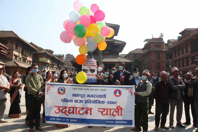 पुर्खाले सिर्जेको सम्पत्ति हाम्रो कला र संस्कृति भन्ने नाराका साथ भक्तपुर नपाको आयोजनामा शुक्रबार भक्तपुर दरबार क्षेत्रमा भएको नगरव्यापी पछिमा बाजा प्रतियोगिता २०७८ को उद्घाटन भयो ।