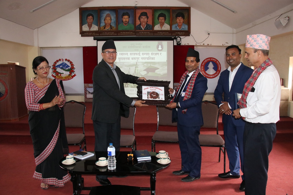 न्यूज अपडेट संवादाता भक्तपुर, १६ असोज भक्तपुर नगरपालिकाले शिक्षा, स्वास्थ्य, सम्पदा संरक्षण, सरसफाइ, विकास निर्माणको क्षेत्रमा गरिरहेको असल अभ्यासका विषयमा अध्ययन गर्न आएको टोखा नगरपालिकाको भ्रमण टोलीले भक्तपुर नपाका प्रमुख सुनिल प्रजापतिसँग भेट ग¥यो । भेटमा टोखा नगरपालिकाका प्रमुख प्रशासकीय अधिकृत शेरबहादुर वि.सी सहित विभिन्न शाखाका २१ जना शाखा प्रमुख कर्मचारीहरुको उपस्थिति थियो । कार्यक्रममा […]