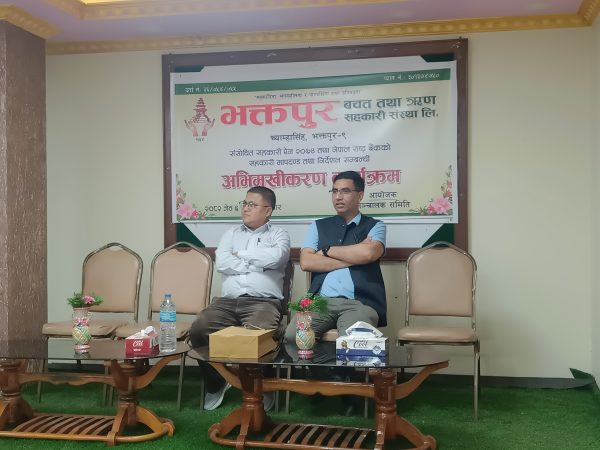भक्तपुर बचत तथा ऋण सहकारी संस्था लिमिटेडको सञ्चालक समितिले संशोधित सहकारी ऐन, २०७४ तथा नेपाल राष्ट्र बैंकको सहकारी मापदण्ड तथा निर्देशन सम्बन्धी अभिमुखिकरण कार्यक्रम समिति, उपसमिति, सल्लाहकार र कर्मचारीबीच मंगलबार संस्थाको सभाहलमा सम्पन्न गरेको छ ।
