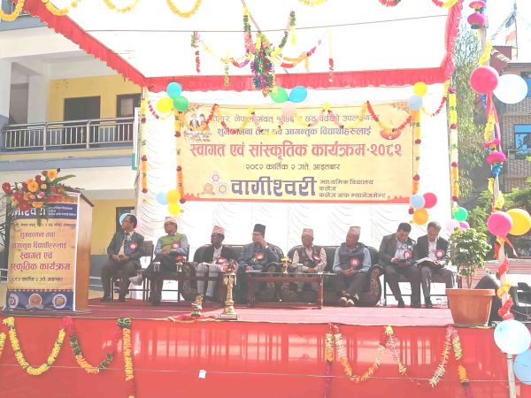 वागीश्वरी माध्यमिक विद्यालय, वागीश्वरी कलेज र वागीश्वरी कलेज अफ म्यानाजमेन्टको संयुक्त आयोजनामा तिहार, न.सं.११४६ र छठ पर्वको अवसरमा शुभकामना तथा नवआगन्तुक विद्यार्थीहरुलाई स्वागत तथा सांस्कृतिक कार्यक्रम आइतबार सम्पन्न भएको छ ।