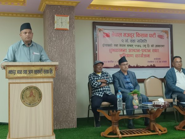नेपाल मजदुर किसान पार्टी ९ वडा एकाइ समितिको आयोजनामा दीपावली, नेपाल सम्बत् ११४६ (न्हू दँ) को अवसरमा आइतबार शुभकामना आदानप्रदान तथा प्रशिक्षण कार्यक्रम भएको छ ।